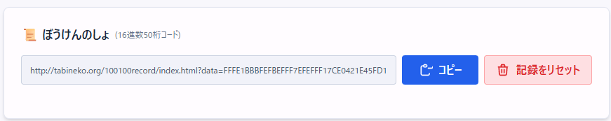 画面下の**「ぼうけんのしょ」**にある「コピー」ボタンを押すだけ。 あなたの現在の攻略データが埋め込まれた専用URLが生成されます。